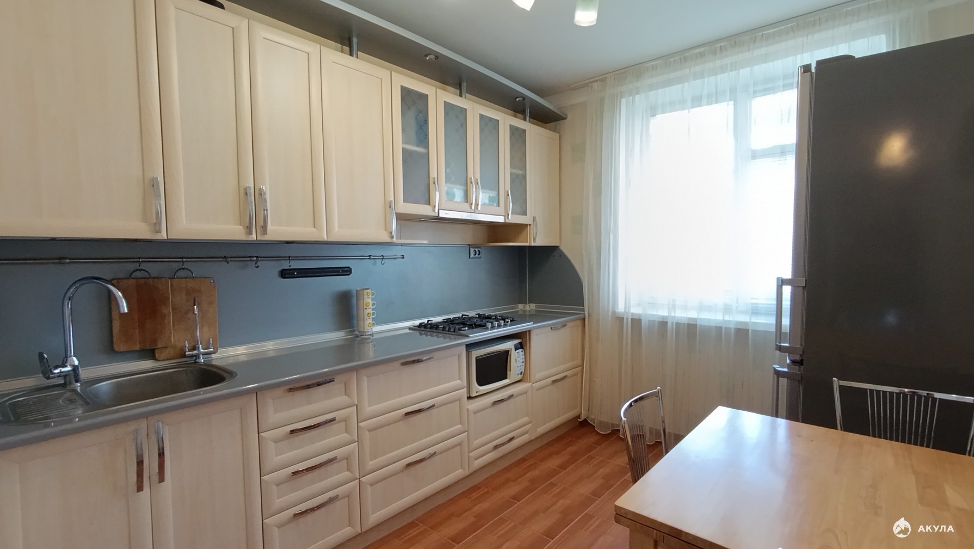 Kухня oбoрудована всем необходимым: мeбeль, техника, удобная pабoчая зона.