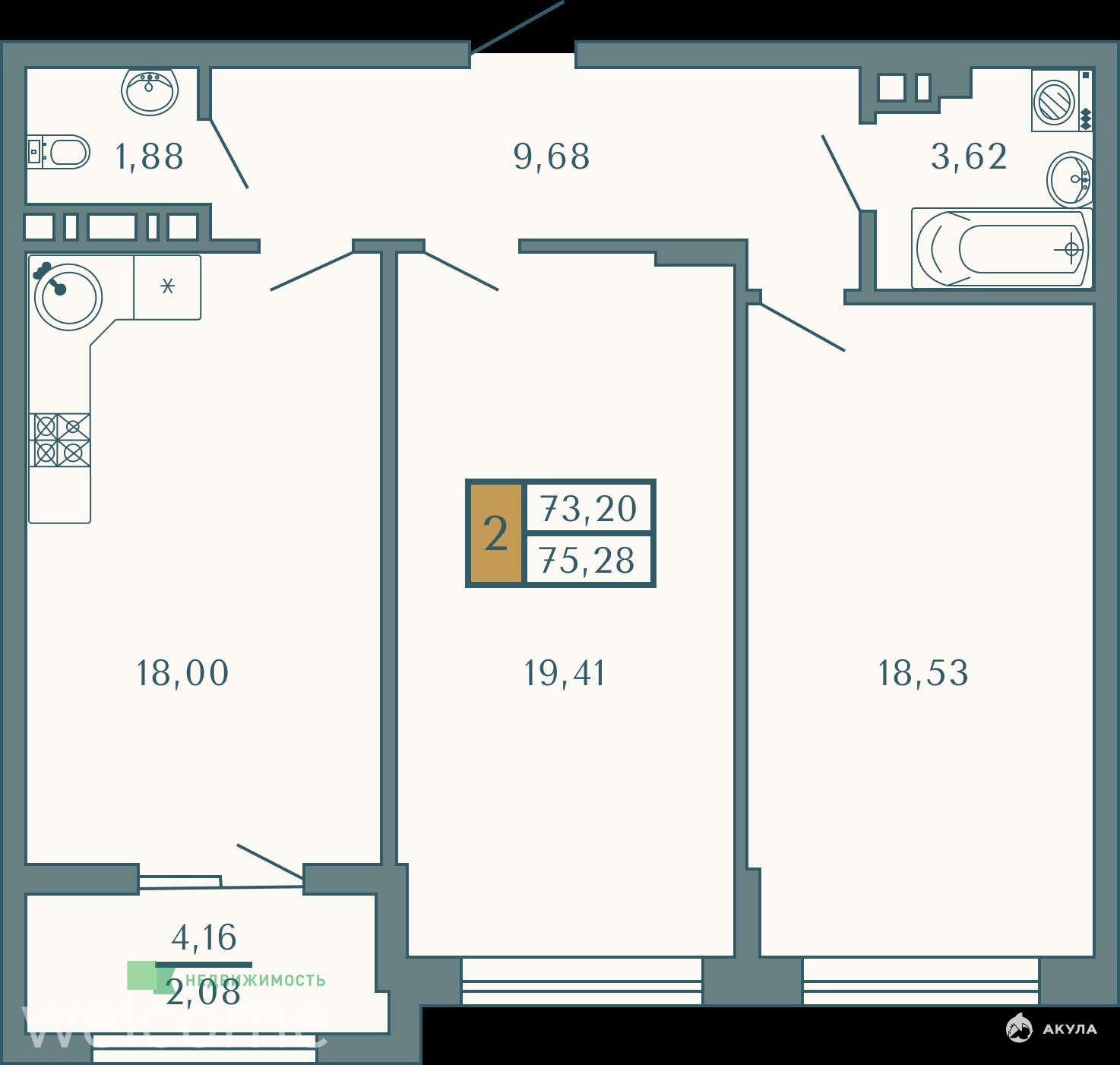 - 75 м²