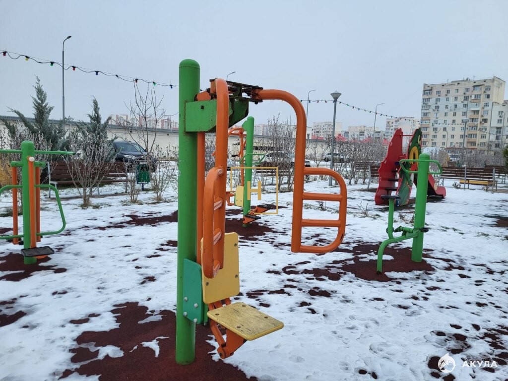 На придомовой территории расположены детская площадка, спортивная площадка с тренажерами и огороженный корт для игры с мячом. Так же придомовая территория облагорожена, озеленена, асфальтирована и на ней находится 111 паркомест для авто, т.е. для каждой квартиры есть паркоместо.