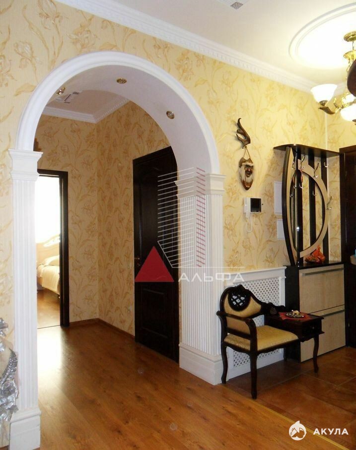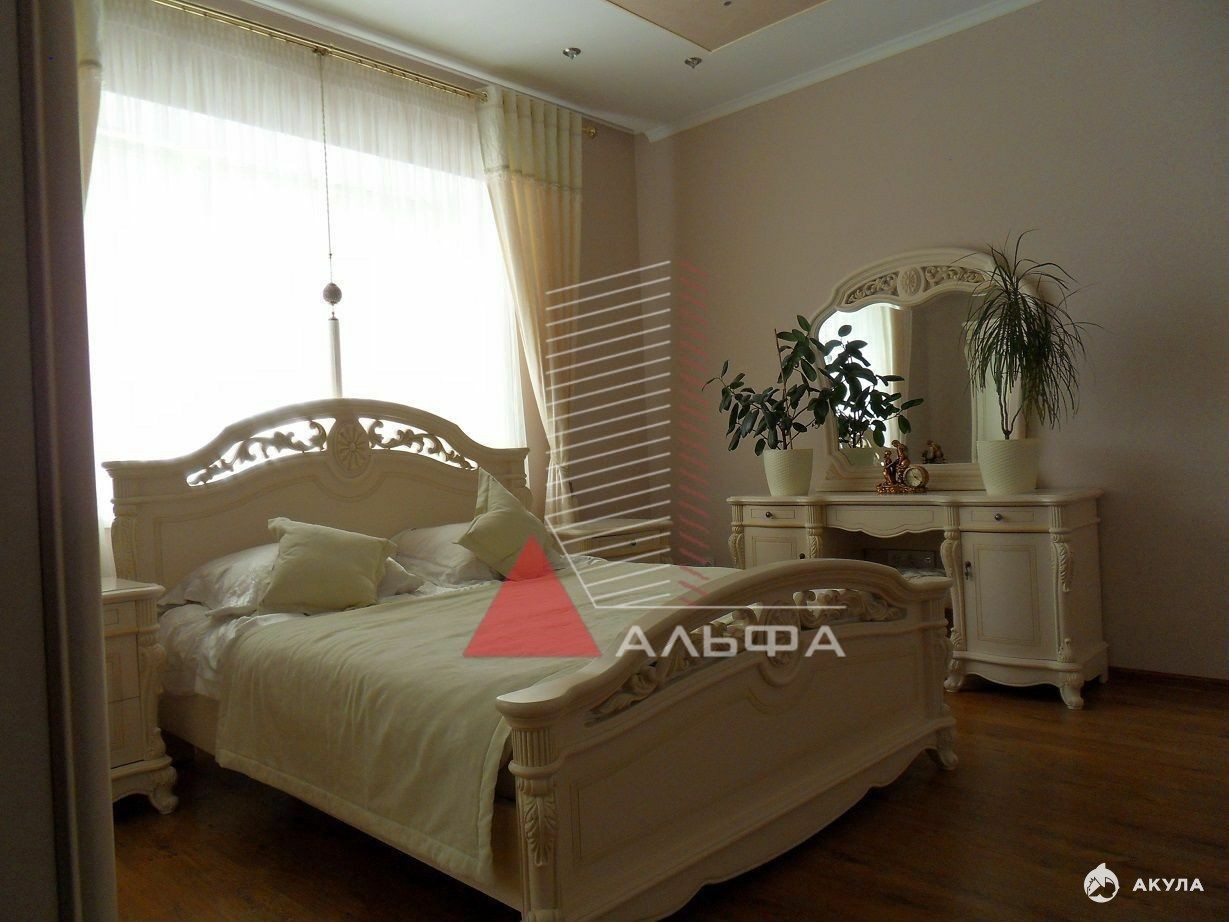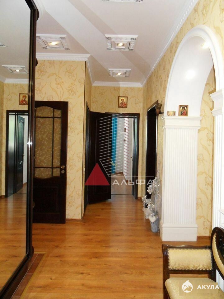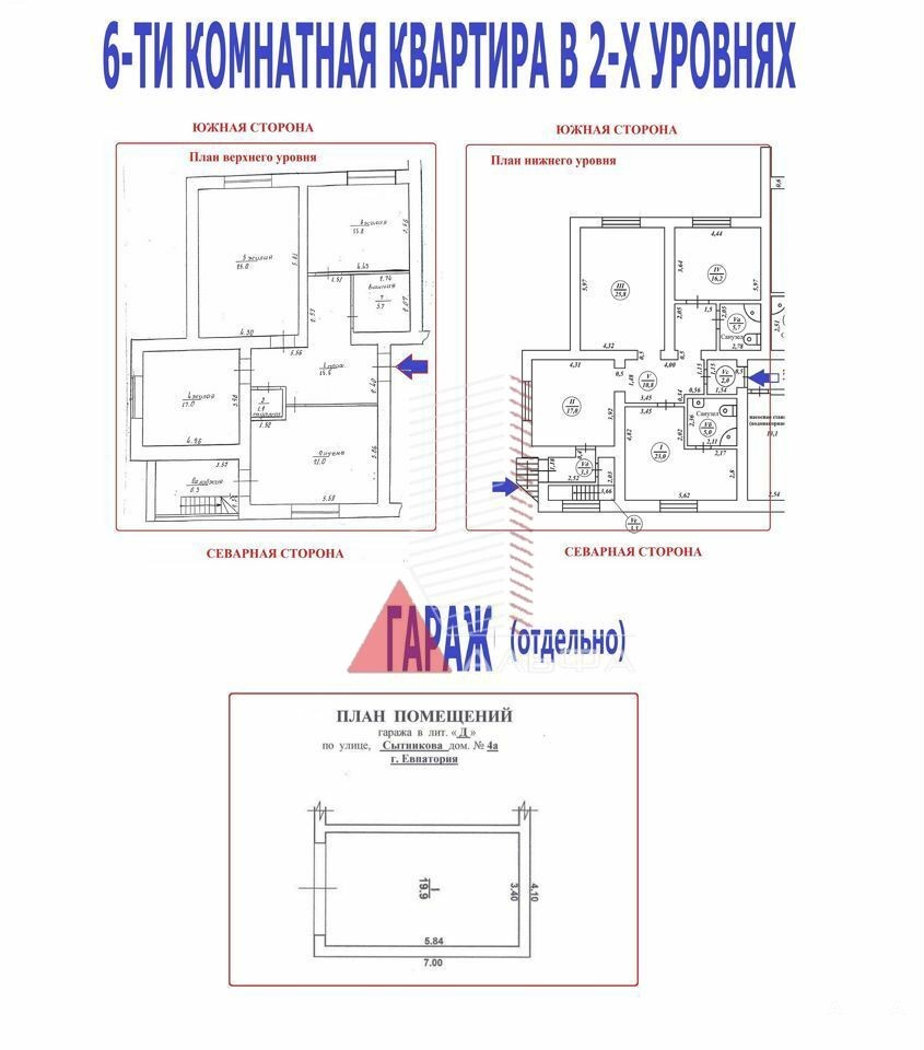 Продаётся современная просторная квартира бизнес-класса с очень удобной планировкой и качественным евроремонтом общей площадью 223кв.м. на первом этаже шестиэтажного дома в г.Евпатория ул.Сытникова д.4а.Квартира двухуровневая. Площадь верхнего уровня - 110, 2 м.кв., нижнего уровня - 113, 2 м.кв.СОЛНЕЧНО И СВЕТЛО всегда во всей квартире (в т.ч. и на нижнем уровне), потому что комнаты квартиры выходят на три стороны: гостиная и спальня – южная сторона, вторая спальня (детская) – восточная сторона и кухня – северная.Высота потолков верхнего уровня - 2, 95м. и нижнего уровня - 2, 8м.При этом квартира теплая зимой и прохладная летом. Стены квартиры обшиты натуральным камнем (альма 600мм) + изнутри кирпич с утеплением + дополнительно снаружи утеплена (общая толщина более 800мм).За счёт этого в квартире надёжная звукоизоляция! Перекрытие – ж/б плиты (220мм) + по междуэтажным перекрытиям (и сверху и снизу) сделана керамзито цементная тепло- звуко- изоляционная стяжка (толщина "пирога" до от 250 до 300мм.) - все вместе толщиной до 500мм.!!! (соседей почти не слышно!) Двери изготовлены под заказ из натурального массива дерева с немецкой фурнитурой.В квартире установлено автономное отопление и горячая вода осуществляется за счёт газового котла 32кВт, также дополнительно установлены два бойлера на 20л. и на 50л. Каждая точка водяного отопления имеет свою, отдельную, подводку и можно индивидуально регулировать температуру отопления.Отопление и горячее водоснабжение в нижнем уровне - электрическое (кроме кухни внизу, в ней подведено отопление от газового котла)В прихожей (площадь прихожей на верхнем уровне - 15.5 м.кв), санузле, ванной, лоджии, в детской и второй спальне (восточная) установлены теплые полы.Просторные ванные комнаты: 5, 7м.кв (верх); 5, 7м.кв и 5, 0м.кв. (низ, совмещённые) и санузел (верх) - 1, 9м.кв.Три санузла: один в верхнем и два в нижнем уровне (с напорной насосной станцией).Площадь кухни 44м2 - это 21м2 в верхнем уровне и 23 м2 в нижнем.Кондиционеры установлены по всей квартире.В квартире (на лоджии) имеется лестница ведущая на другой уровень с отдельным (дополнительным) входом с улицы.Фактически каждый уровень это своя, обособленная, квартира - поэтому нижний уровень может быть использован в качестве гостевой с отдельным входом.У квартиры отличное расположение с удобной транспортной доступностью в спокойном районе. Летом вам не будет мешать шум и музыка от летних кафе и дискотек и при этом рядом (в 5-ти минутной пешей доступности) вся инфраструктура: рынок, супермаркет "Фреш", школы, детский сад, поликлиника, авто- и ж/д- вокзалы. Новая автодорога и удобный подъезд к дому. Мусоросборник в 100 метрах. Невысокая оплата ЖКХ (оплата за электроэнергию, воду и газ - по счетчикам).Большой ЗАКРЫТЫЙ двор с приусадебным участком. Ворота во двор открываются на пульте управления.Кроме этого в непосредственной близости (буквально в 10 м.) от квартиры во дворе есть капитальный ГАРАЖ (20м2) и крытое машино-место (непосредственно прямо напротив окон квартиры). Гараж продается отдельно. Машино-место - бесплатно)Стоимость гаража - 2 500 000 млн.руб. Размер гаража - 3400 на 5840 мм - 20 кв.м). Гараж изнутри обшит кафельной плиткой, отделка короедом, ворота с пультом управления, в гараже есть ремонтная «яма», хорошие металлические стеллажи и установлен дизель-генератор на 5 кВт, который можно запустить из квартиры если 