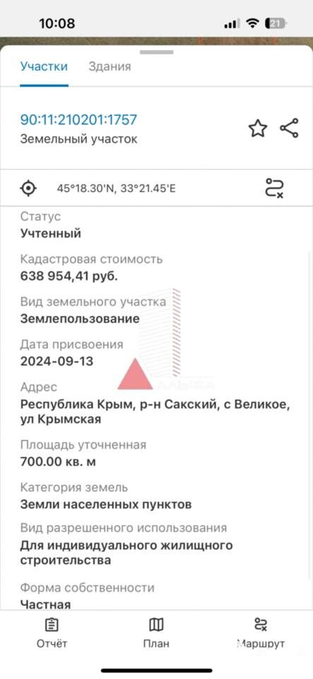 Продается замечательный участок площадью 7 соток в живописном селе Великое, расположенном в Сакском районе Республики Крым. Участок находится всего в 13 километрах от города Евпатория, что обеспечивает удобный доступ к городской инфраструктуре, сохраняя при этом атмосферу спокойствия и уединения загородной жизни.